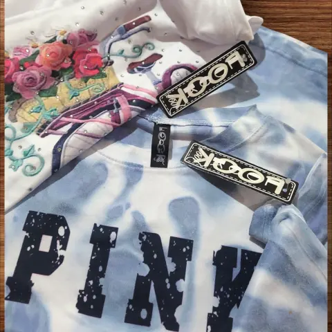 Set de 2-Piezas de Camisetas Look. Set de 2-Piezas de Camisetas Look, talla 10, colores blanca y azul distresado, cuello redondo, manga corta, diseño grafico en las 2, hechas de algodón, miden 36cm de hombro a hombro, 39cm de axila a axila, 35cm de cintura con 53cm de largo del hombro hacia abajo, nuevo a estrenar con etiqueta en buen estado cosmetico.