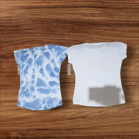 Set de 2-Piezas de Camisetas Look, talla 10, colores blanca y azul distresado, cuello redondo, manga corta, diseño grafico en las 2, hechas de algodón, miden 36cm de hombro a hombro, 39cm de axila a axila, 35cm de cintura con 53cm de largo del hombro hacia abajo, nuevo a estrenar con etiqueta en buen estado cosmetico.