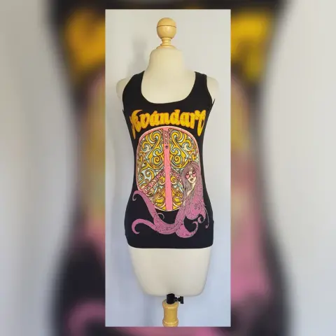 Tank Top c/Estampado. Tank top color NEGRO ÉBANO c/estampado MULTICOLOR modelo AVANDARO, cuello redondo y manga sisa. Talla XL (REDUCIDA, da mejor a L). Dimensiones cms: 28 hombro, 44 axila, 41 cintura, 46 zona baja, 58 largo. 98% algodón, 2% elastano. Para lavado en casa.
