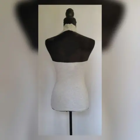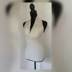 Tank top color GRIS SIBERIA c/ribete de encaje zona busto, corte tipo halter y copas preformadas p/mejor ajuste. Talla M. Dimensiones cms: 41 axila, 33 cintura, 41 zona baja, 60 largo. 95% algodón, 5% elastano. P/lavado en casa.***POR LA COMPOSICIÓN DE LA PRENDA ES STRETCH PERO NO COMO P/SUBIR A LA SIG TALLA***