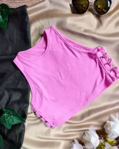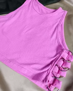 Top con argollas color rosa. ❤Precio a tratar si es compra inmediata o si te interesan otras prendas de mi clóset :3✨Se envía en un mismo paquete para ahorrarnos los envios 🤗🤗Top color rosa con argollas a los laterales✨Nuevo con etiqueta👌La tela es stretch👉Talla S pero tambien queda M🪡MEDIDAS de costura a costuraDe axila 39 cmDe largo 33 cm
