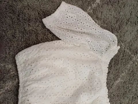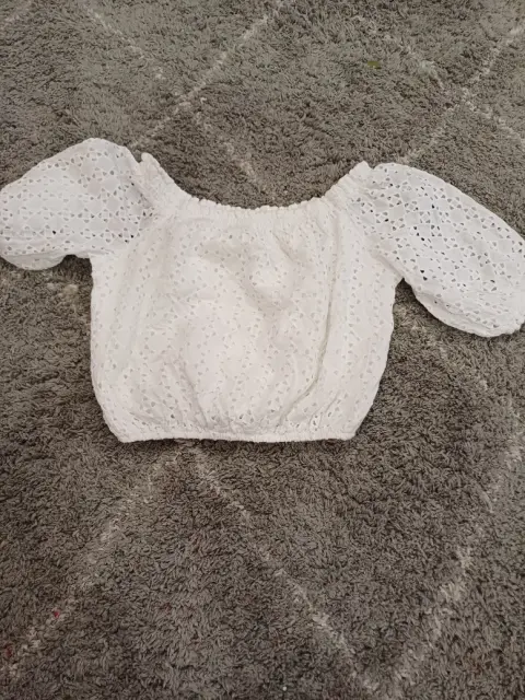 Hermosa top crop de encaje. Tiene resorte en cintura y escote. No transparenta. Súper bella y combinable con todo 💕. La tela es rayón y poliéster.Medidas ax a ax 47 cm, cintura 29 cm, largo 36 cm.