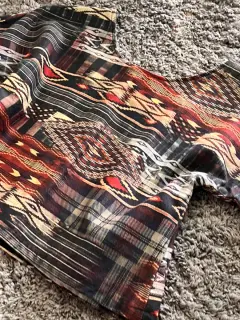 Hermoso top corto de manga larga y hombro caído con bonito estampado. Tiene abertura y lazo en espalda. Medidas ax a ax 42 cm, largo 39 cm.