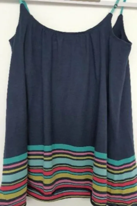 Top de tirantes Aeropostale.Es holgado, los tirantes son color turquesa,el top es azul marino con líneas decolores en la parte de abajo.Talla XS. Medidas aproximadas 37cm de axila a axila,62cm de largo a partir del hombro.*TODAS MIS PRENDAS SE DESINFECTAN CON LYSOLLAVANDERIA PARA TU MAYOR TRANQUILIDAD*