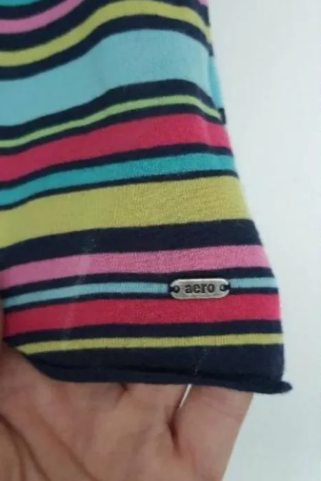 Top de Tirantes Aeropostale. Top de tirantes Aeropostale.Es holgado, los tirantes son color turquesa,el top es azul marino con líneas decolores en la parte de abajo.Talla XS. Medidas aproximadas 37cm de axila a axila,62cm de largo a partir del hombro.*TODAS MIS PRENDAS SE DESINFECTAN CON LYSOLLAVANDERIA PARA TU MAYOR TRANQUILIDAD*