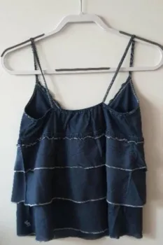 Top de tirantes azul marino marca Abercrombie & Fitch.Escote en V, tiene olanes.La tela es delgada y vieneforrado. Tiene resorte en la espalda y los tirantes noson ajustables.Talla L. Medidas aproximadas:37cm de axila a axila sin estirar, 56cm de largo desdeel hombro.*TODAS MIS PRENDAS SE DESINFECTAN CON LYSOLLAVANDERIA PARA TU MAYOR TRANQUILIDAD*