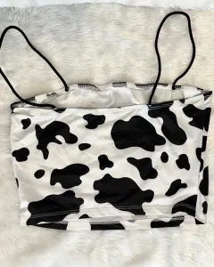 Top vaca tirantes. Top con estampado de vaca blanco y negro. Tela y tirantes que estiran. Talla S. Súper cómodo, lo usé dos veces. No tiene detalles.