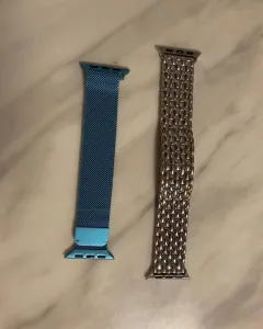 Pack de dos extensibles para applewatch de 38, uno es color azul súper bonito y el otro plateado, ambos con pocos detalles de uso que se ven las fotos