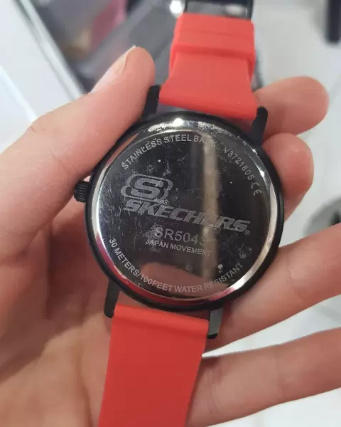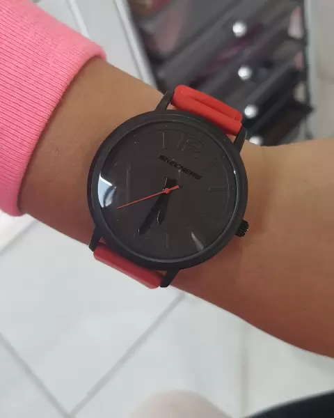 Hermoso reloj skechers rojo. Se ve increible, el material de la correa es genial, super suave pero super calidad 👌🏻 Es la cereza del pastel para los outfits.Sin detalles.