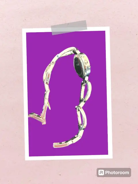 Relog Pulcera Fashion de cuarzo, color rosado con piedras blancas de acento, pulcera de circulos con piedras rosadas, elegante diseño, cierre de clasps, hecho de acero inoxidable, nuevo a estrenar con etiqueta