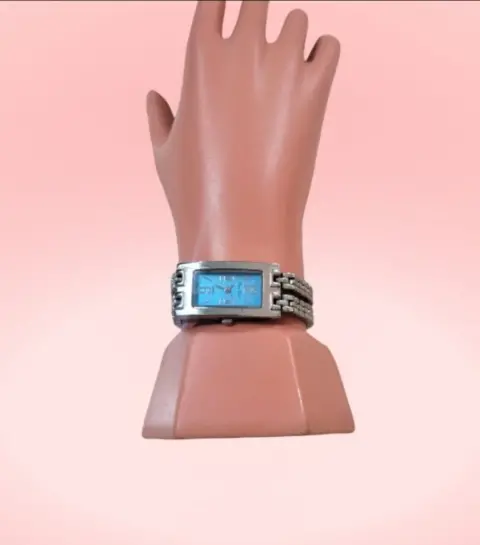 Relog Fashion de quarzo con Pulcera Doble de Paul Neil, color plateado con fondo azul cielo, cietre de precion, forma rectangular, trabaja con pila, nuevo con estuche en buen estado cosmetico.