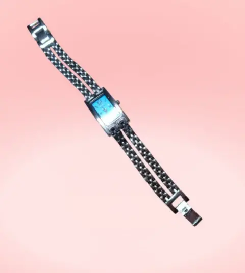 Relog Pulcera Doble Paul Neil. Relog Fashion de quarzo con Pulcera Doble de Paul Neil, color plateado con fondo azul cielo, cietre de precion, forma rectangular, trabaja con pila, nuevo con estuche en buen estado cosmetico.