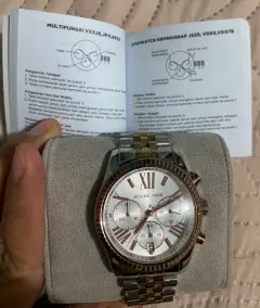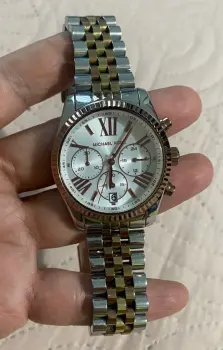 Lindo reloj analógico marca MK ORIGINAL de dama en tono Plata y oro rosado el cual es acero inoxidable, fue ligeramente usado no tiene detalles funciona perfecto en las fotos se muestra tal cual!