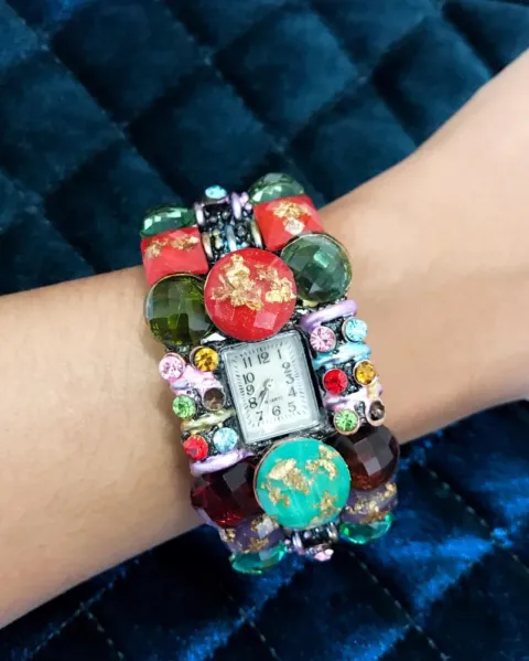 Reloj de pedrería multicolor. Hermoso reloj de pedreria. Esta en perfecto estado, no tiene ningun detalle. Le hace falta bateria