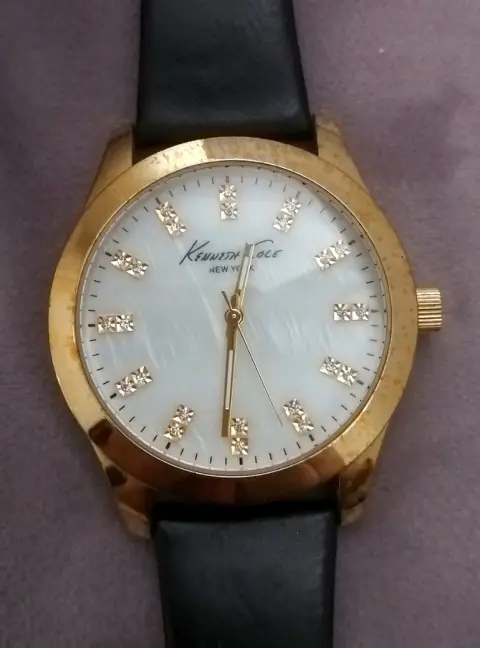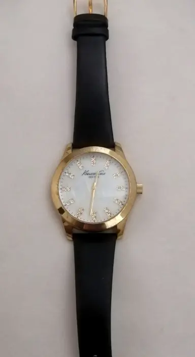 Reloj de pulsera 🖤. Hermoso reloj de pulsera Kenneth Cole 🖤 es muy feminino y luce mucho ✨Número de serie: A126-14 KCW2024Esfera de nácar color madre perla con cristales swarovskiCorrea de cuero genuinoMovimieno: cuarzo analógicoResistente al agua: 30 metrosNo cuento con el empaque original pero todo funciona bien ☺️✨