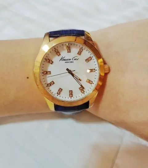 Hermoso reloj de pulsera Kenneth Cole 🖤 es muy feminino y luce mucho ✨Número de serie: A126-14 KCW2024Esfera de nácar color madre perla con cristales swarovskiCorrea de cuero genuinoMovimieno: cuarzo analógicoResistente al agua: 30 metrosNo cuento con el empaque original pero todo funciona bien ☺️✨