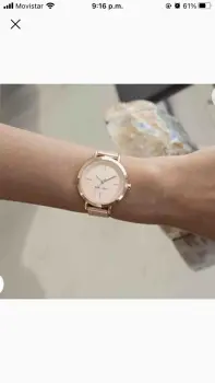 Lindo reloj en color oro rosado marca Nine West de acero inoxidable. Lente de vidrio con eslabones ajustables. Tiene dos pequeños detalles, uno alrededor del lente del lado derecho se rayo ligeramente y también de uno de los eslabones por la parte de atrás pero ambos detalles son poco visibles (en las dos ultimas fotos se pueden ver los detalles).