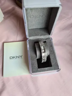 Reloj DKNY. Reloj analógico, con pedrería de cristal; solo que al momento le faltarán unas 4 piedritas y le falta pila; y cuenta con algunas rayaduras muy pequeñas por el uso.