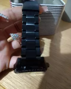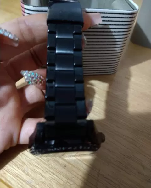 Bonito reloj negro con pedrería, tiene todas sus piedras funciona al 100 cuenta con su caja
