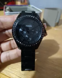 Reloj Fossil negro. Bonito reloj negro con pedrería, tiene todas sus piedras funciona al 100 cuenta con su caja