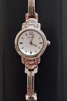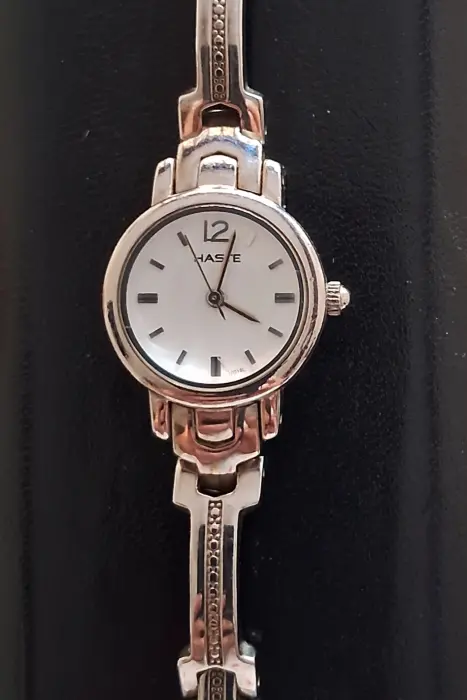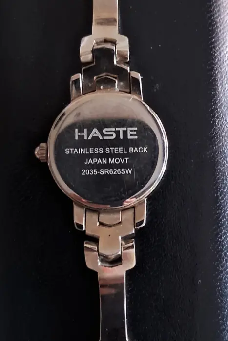 Reloj Retro para dama, Vintage de la marca Haste. Color plata con carátula en color blanco y números en plateado.Leyenda en la caratula: Haste, Stainless Steel Back, Japan Movt, 2035.Acero inoxidable. Sin defecto, se usó en 4 ocasiones. Ideal para coleccionistas.Funcionando correctamente con batería nueva.Sin caja.Ya no se fabrica.$ 1,300 Precio a tratar después de ver físicamente el producto.