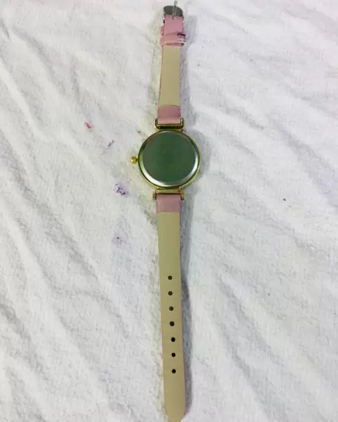 La caja del reloj tiene La torre Eiffel De fondo y en cada hora en vez de encontrarse un número se puede observar incrustado una piedra de Swarovski y en la parte superior de cada piedra se encuentran los segundos den cinco en cinco. Caja de acero inoxidable Bañado en color oro (ojo no es baño de oro) tiene cuatro incrustaciones de Swarovski a los lados. La correa es de piel sintetica.