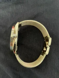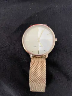 Reloj Nine West, está nuevo pero por el tiempo que lo tuve guardado está un poco desgastado de la parte del broche, de todo lo demás está en perfecto estadoOjo no tiene pila por que lo guardé prendido