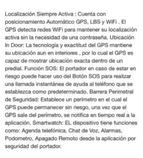 Reloj para Niño con localizador. Localización siempre activa. Barrera perimetral de seguridad -agenda telefónica asignada por el tutor -Chat de voz solo con los contacto -Alarmas -llamadas solo con la agenda -Podómetro-Apagado solo desde la aplicación del padre-El tutor puede escuchar lo que se esté hablando donde esté el portador sin que alerte ni al pequeño ni a sus acompañantes -requiere chip de compañía telefónica,etc