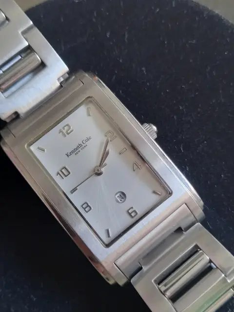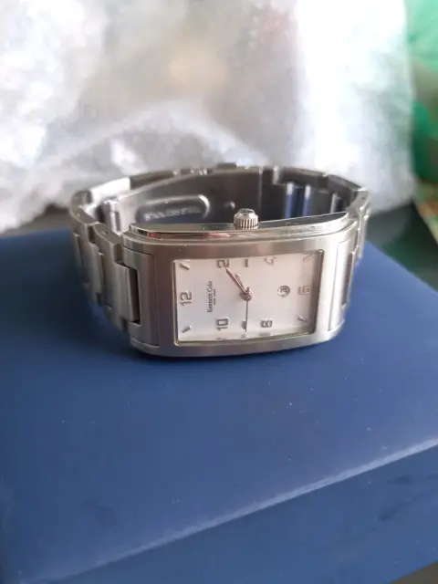 Reloj plateado kenneth cole. Reloj clásico de acero inoxidable, resistente al agua, con dial,, mínimo usó, muy bien cuidado