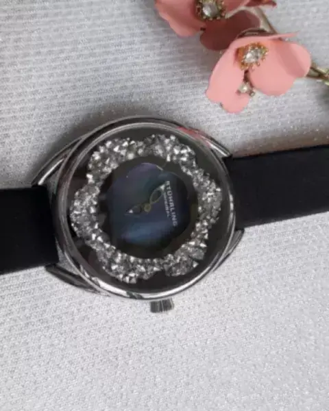 Reloj Stuhrling concha nácar. Hermoso reloj Stuhrling correa de piel, resistente al agua 50 mts, pantalla en forma de flor en concha nácar con incrustaciones de cristales que lo hacen lucir muy lindo. Original, sin caja. El precio original es de $6300 en Liverpool.
