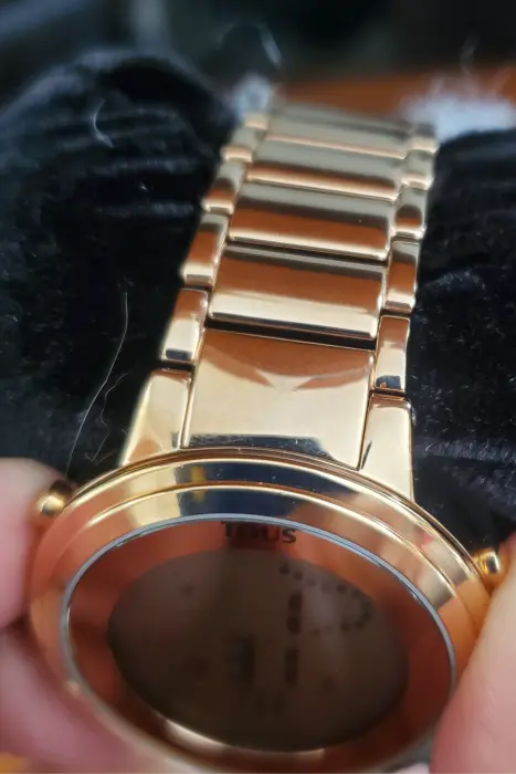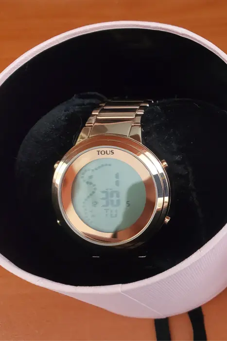 Reloj tous Digibear , materiales del reloj acero inoxidable, color oro rosado, diámetro de la caja 38,5 mm. , resistente al agua hasta 5 ATM, pantalla de cristal mineral , funciones: hora, minutos, segundos, esfera 24 horas, cronógrafo y calendario. Nuevo sin uso, se envía en su estuche y copia de comprobante de compra.