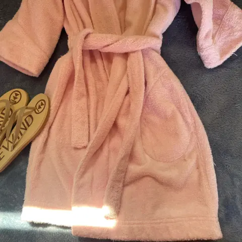 Hermosa bata para salir del bañoColor rosaGruesa , manga 3/4Resorte el la parte de la cintura ñ, cinta ajustable100% algodón