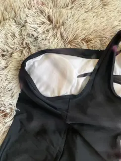 Cómoda y guapa. Cuenta con copas removibles y detalles de paneles de malla. La luz de la foto hace que varíe el color, es totalmente negro. Sin detalles