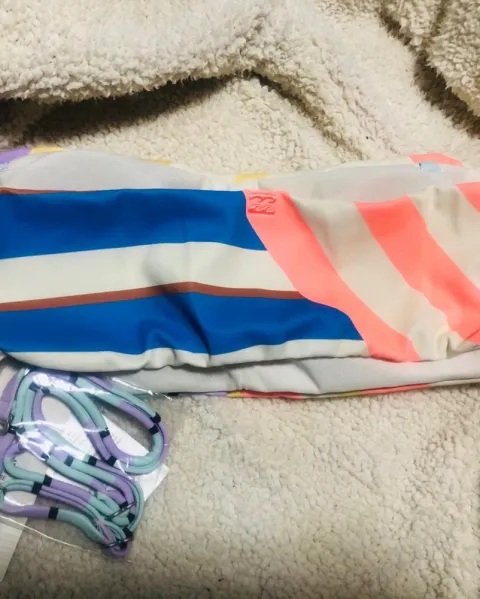 Bikini blanco con rayas de colores, nuevo con etiqueta, incluye tirantes