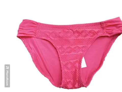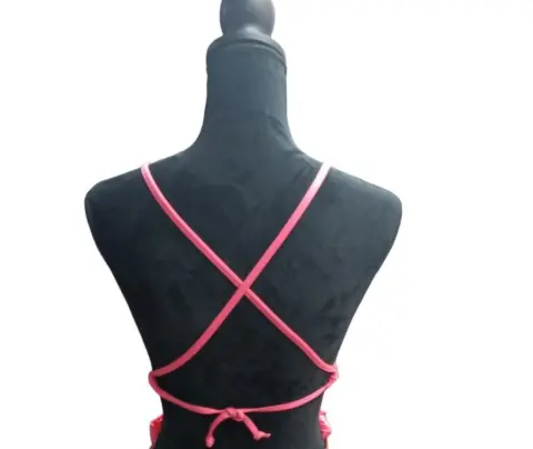 BIKINI CROCHET TALLA M , CON DISEÑO LISO , BRASIER DE AXILA A AXILA 30CM, DE LA CINTURA DE LA PANTALETA ES DE 34 CM, Y ESTA HECHO 90% NAYLON 10% SPANDEX,MARCA BECCA