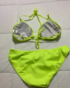Bikini dos piezas T/M. Hermoso bikini T/M, de dos piezas, verde-amarillo fosforescente, una sola puesta, sin detalles,