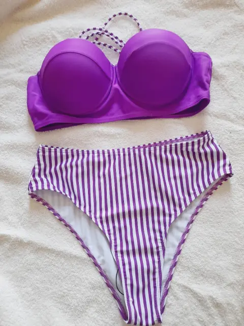 BIKINI MORADO. Traje de baño, talla M el color es Morado Lila esta increible el color tiene su protector de calzón el top es talla 36B y el calzon Mediano me quedo grande de la copa solo se uso una vez