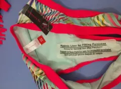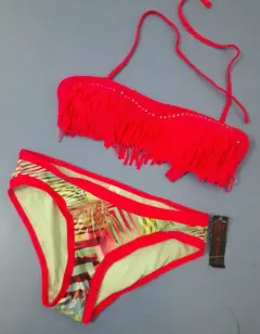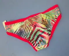 Bonito bikini con diseño de hojas multicolores, con vistas en color rosa neón aunque en la foto parece naranja, marca No boundaries, talla chica. Combinable con el top straple de barbitas, si te agrada, te lo envío en la compra del bikini por $50 más. Agrego foto muestra al final
