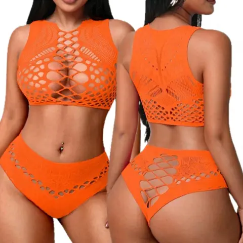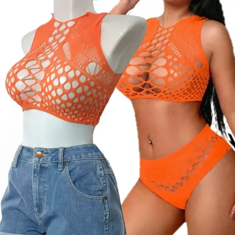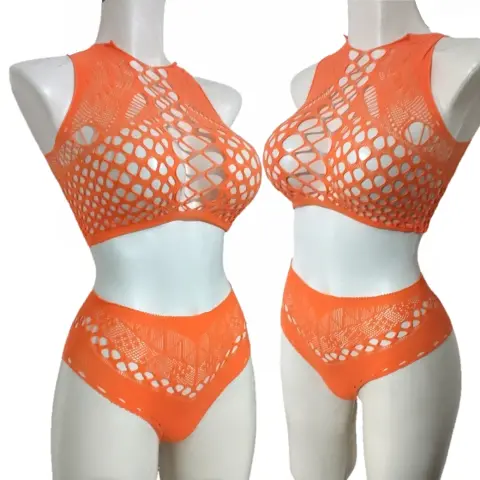 Conjunto De RedColor Naranja Material Elástico AltoUnitalla (XS-CH-MED-GRANDE Y EXTRA GRANDE)Úsalo como salida de alberca, playa , festivales, carnavales, fiestas temáticas, una noche divertida.Contenido 2 piezas top y bóxer, no incluye Bra ni Panty.Luce tu estilo y destaca tu belleza!