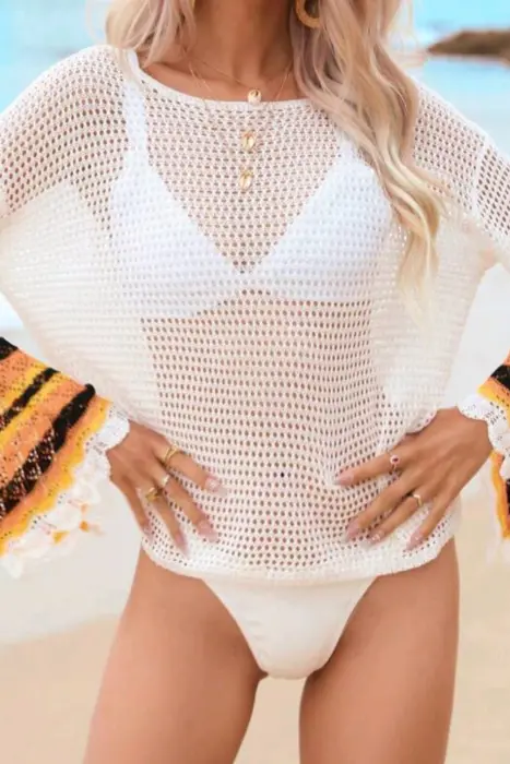 Nuevo y coqueto cover up para la playa, las mangas están hermosas. Medidas: pecho 112 cm, hombro 56 cm, largo de la manga 46.5 cm, largo 52cm, puño 49 cm, contorno biceps 33.4cm