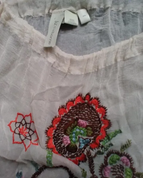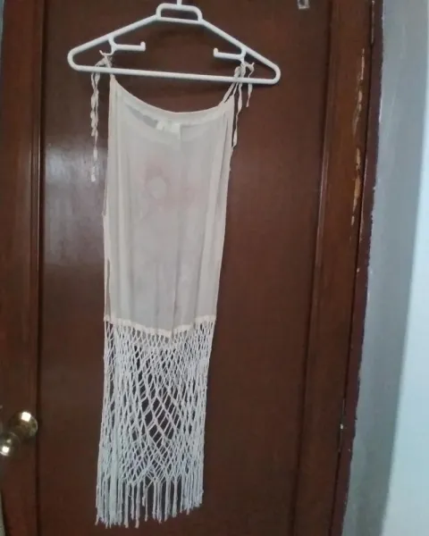Cubridor de traje bordado comprado en liverpool es unitalla tela gasa abierto de los lados, tiras en la parte de abajo, en los hombros tiene cintas de misma tela para su ajute