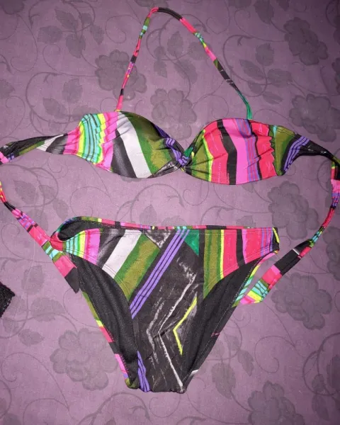 Hermoso traje de baño de 2 piezas y cubre traje de hoyitos, solo se usó una vez, la parte alta es para un 34b y la parte baja talla S, igual el cubre traje.