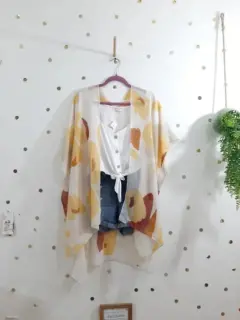 Luce un look espectacular con este hermoso Kimono- pareo!! Úsalo en tu outfit diario ó como pareo de playa es ideal ya q su tejido es muy cómodo suave ligero y fresco!! Nuevo! Unitalla queda perfecto desde talla XS hasta XL!! Hermoso diseño en diferentes tonalidades amarillo y café fondo beige!! Para más modelos disponibles consulta mi clóset!! Con gusto resuelvo cualquier duda!!