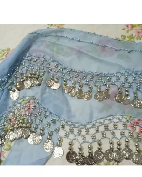 Hermoso Pareo para Danza Árabe Chifon. Color azul cielo.Solo se uso una vez, se compró para clases de danza arabe, sin embargo, solo se uso una vez. Esta en perfecto estado.