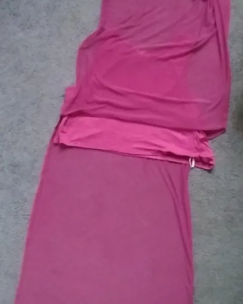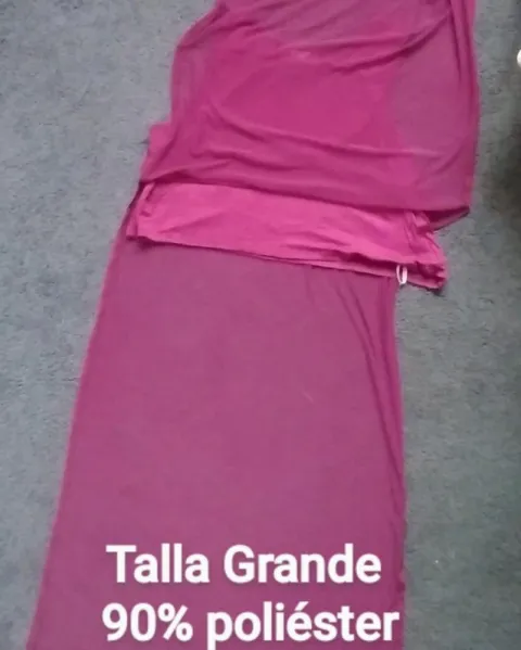 Pareo salida de playa o alberca pasé en malecón, muy bonito se uso dos veces en pasarela color rosa lechónEstá transparente de cintura asía rodilla, hombro a busto es doble tela, abierto a los lados amplioMarca Zoy