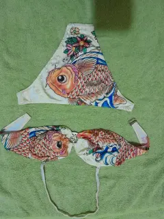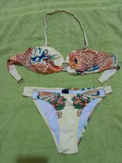 Sexy Bikini. Bikini con estampado de pez y aplicaciones que lo hacen brillar, es nuevo sin etiquetas, marca Christian Audigier, talla S.