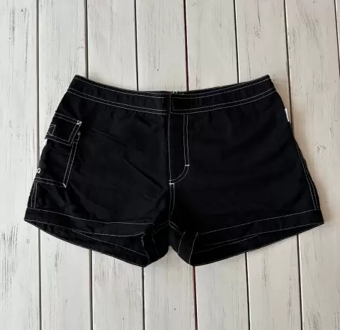 Short negro para la playa/alberca, tiene Velcro para cerrar, un bolsillo pequeño lateral. No es stretch.Talla: 28 Medidas: 36 cm de cintura, 45 cm de cadera, 23 cm de tiro, 28 cm de largo.En la entrepierna se ve en foto el desgaste.