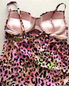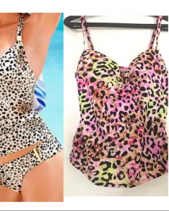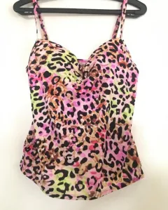 Tankini VICTORIA’s SECRET cheeta chicaTankini top VICTORIA’s SECRET cheeta chicaCopitas removible Relleno de esponja Talla 32BTirantes ajustables parte trasera Cruzado y Balconette