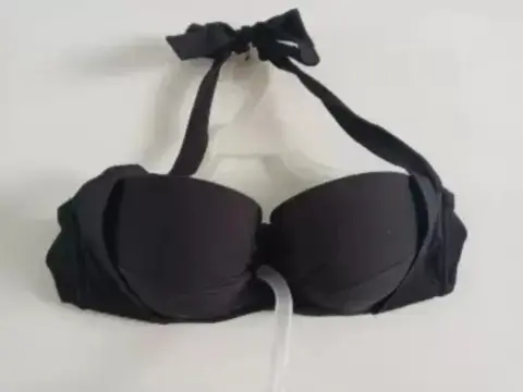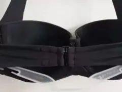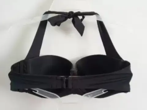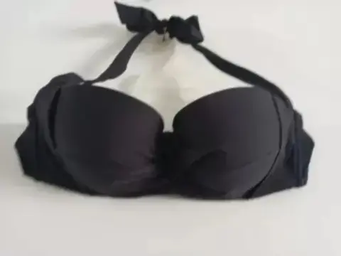 Bikini (top) negro, tirantes tipo halter, copas preformadas, broche trasero. Largo total aprox. 73 cm o un poco más ya qué estira. No trae etiqueta 🏷 se quito porqué era visible. Pero 100% la.marca indicada.