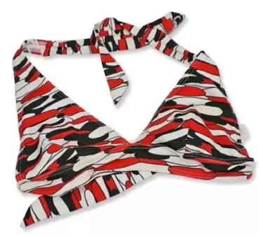 Top traje baño color blanco, rojo, negro talla L. Top de traje de baño en color rojo con negro y blanco talla L marca Grip, ideal para cuando quieres combinar trajes que ya tienes y hacer nuevas combinaciones. Súper lindo y pieza única